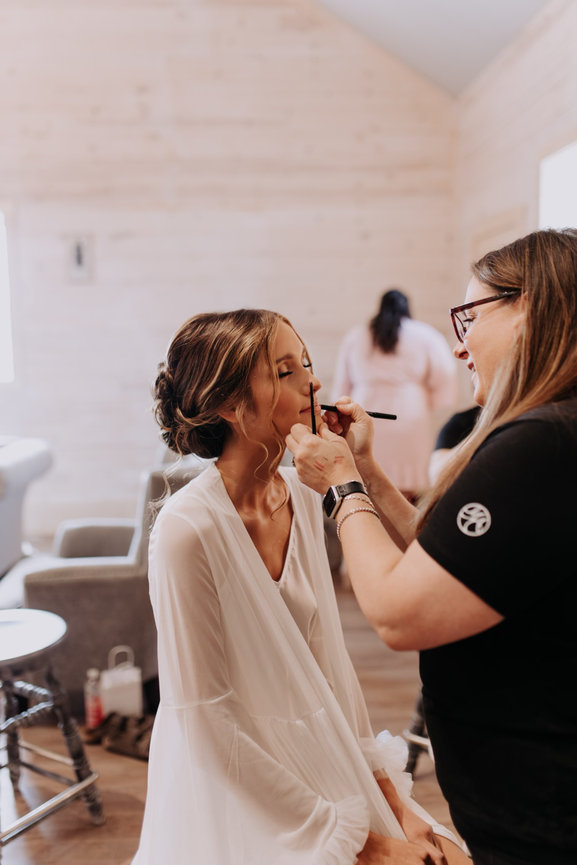 Our Signature Bridal Hair is Your Vision + Our Experience in making that a vision a reality! It's ensuring that your style is not only beautiful, but will stay throughout your entire day. Prepping your hair to hold curl or hold the style is essential and we make sure that the products we use assist in making that happen! We include veil or accessory placement, locking it in place too. We will show one of your bridal party team where we place the securing hair pins and then make sure that you have a hair touch up kit - just in case! *extra fees apply with extensions or installation of clip-in extensions.